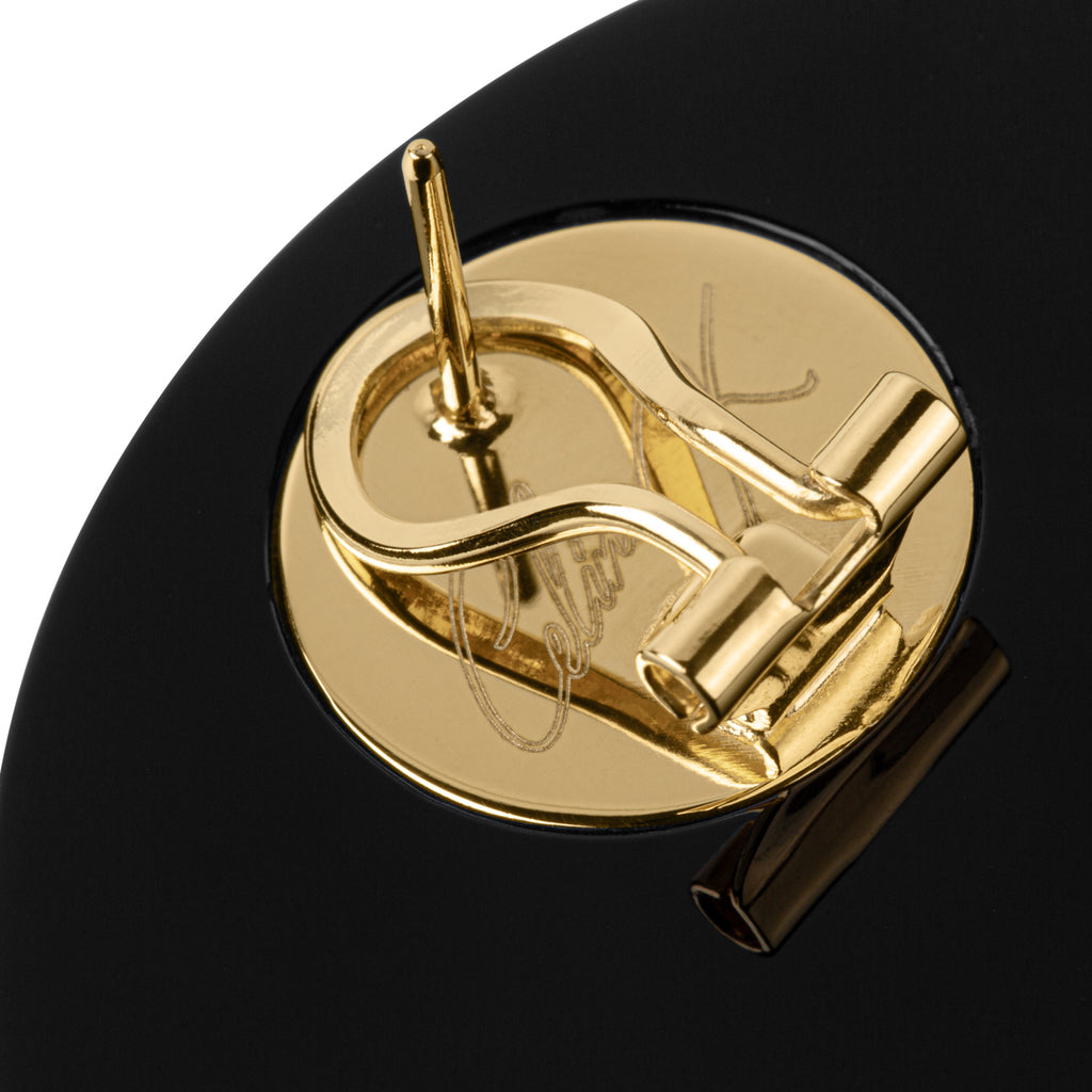 These earrings are made of inky-black resin encrusted with shimmering black Swarovski stones. They're centred with a neon-pink enamel to give you a unique look.